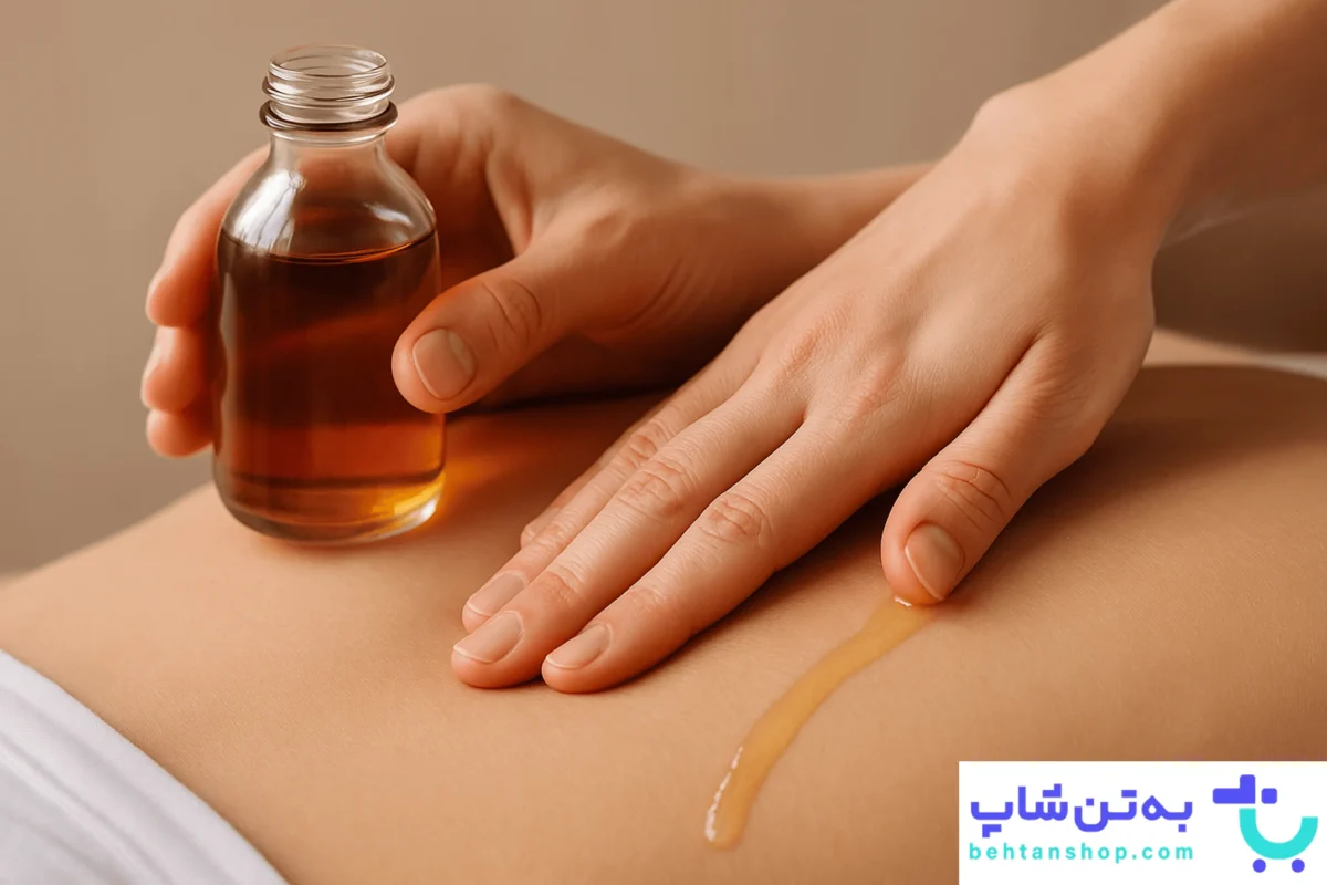 روش: روغن را روی کمر ریخته و به مدت ۵ تا ۱۰ دقیقه با حرکات دورانی ملایم ماساژ دهید.