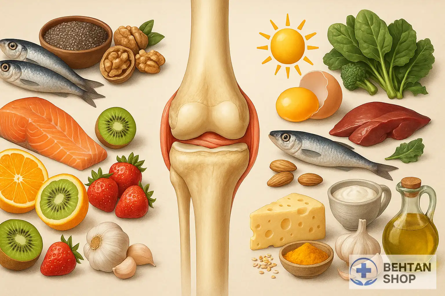 حفظ استخوان اطراف مفصل: اگرچه آرتروز مستقیماً بیماری استخوان نیست، اما استخوانهای اطراف مفصل درگیر میشوند و نیاز به کلسیم و ویتامین D دارند.