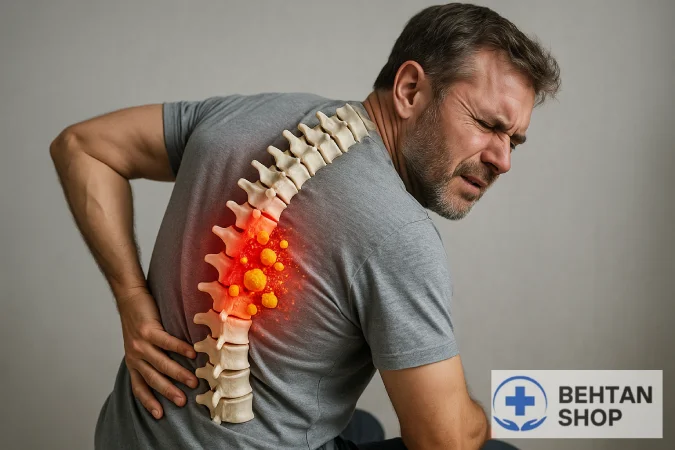 چطور بروز میکند؟ درد عمیق، مداوم و موضعی کمر/گردن که با استراحت هم خوب نمیشود؛ معمولاً تب خفیف یا نوسانی.